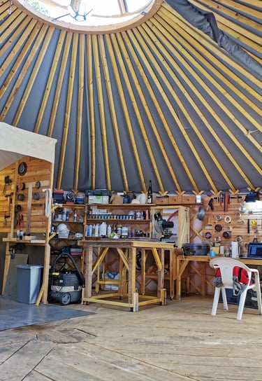 "Je voulais terminer la présentation de Cayriech par celle d’un artiste talentueux qui y travaille en toute discrétion. Il a été récompensé au Salon des Créateurs et Artisans d’Art de Toulouse en 2021. C’est un sculpteur de lumière, de nature, de beauté effarante. Il travaille la matière brute jusqu’à une vie organique, onirique, lumineuse qui touche l’âme par osmose, qui nous plonge dans la pâleur aqueuse d’une nuit lunaire, dans un reflet d’étoiles avec un pétillement de joie pure. Son humilité laisse la place à son œuvre grandiose, sa tendresse à ses lumières lactées, son humour à l’humus sylvestre. Merci Joël Bartz.
