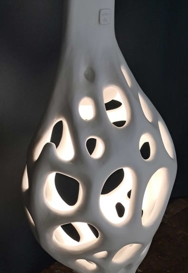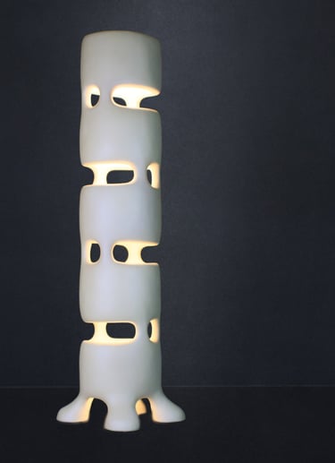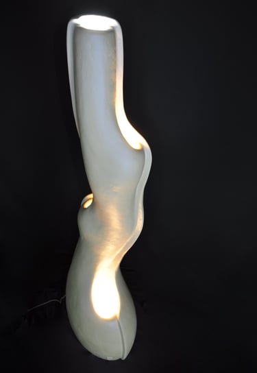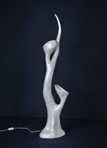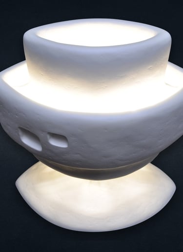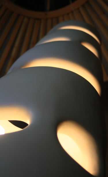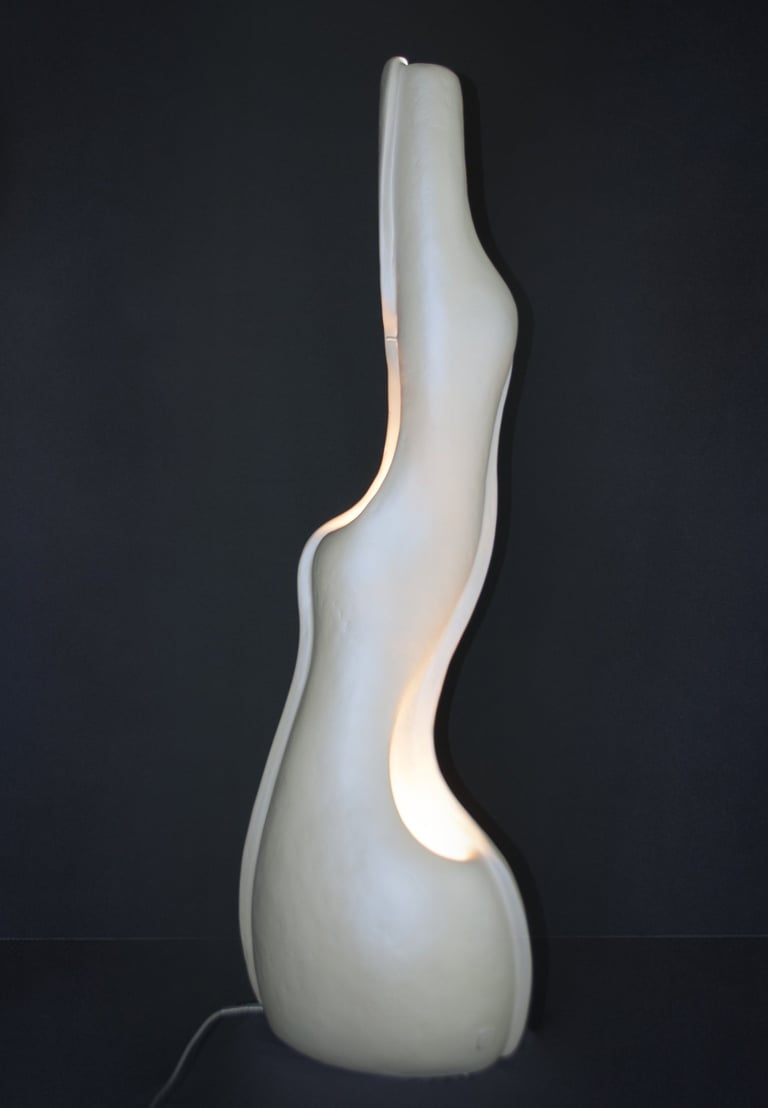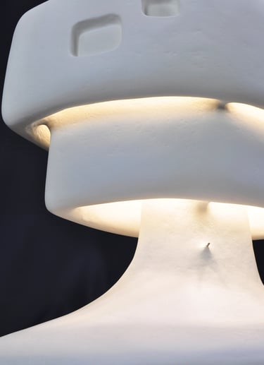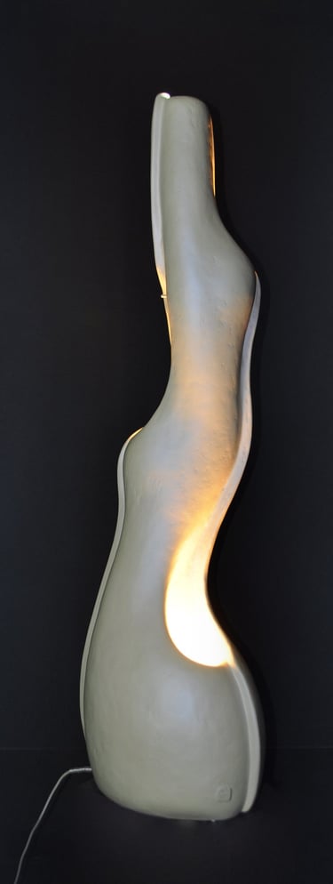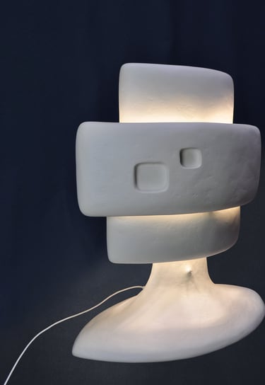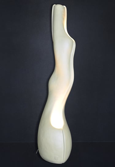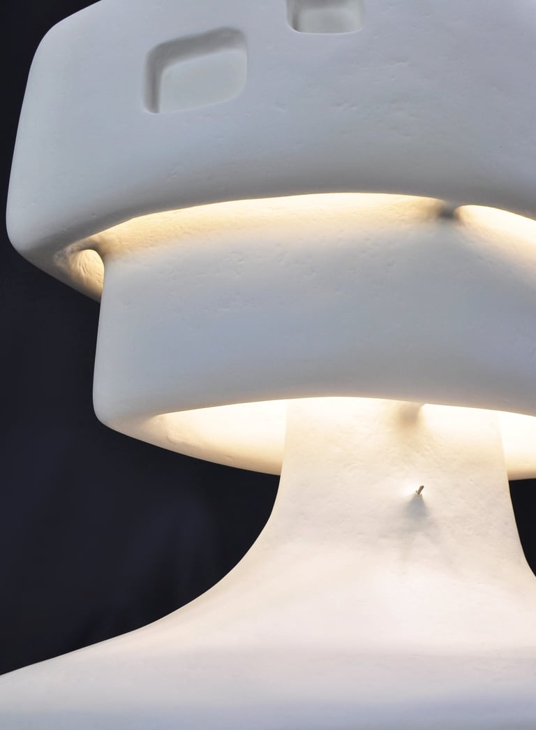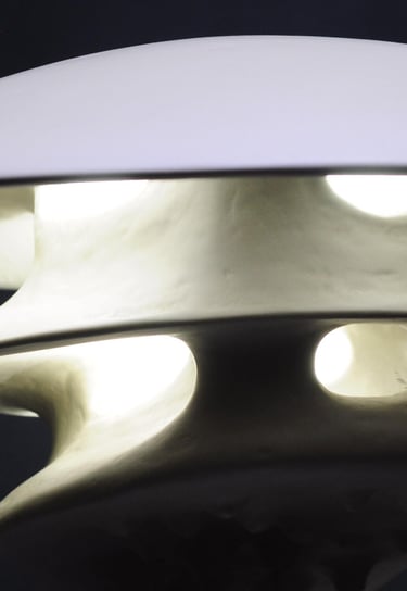 /DES SCULPTURES BLANCHES AUX REFLETS NACRÉS TRÈS LÉGÈREMENT COLORÉS, DES LAMPES QUI SAURONT RÉVÉLER VOS ESPACES INTÉRIEURS EN DIFFUSANT UNE AGRÉABLE SÉRÉNITÉ ET UNE DOUCE ORIGINALITÉ./