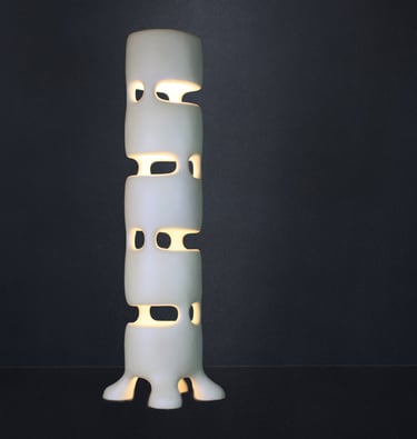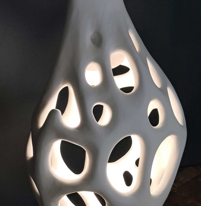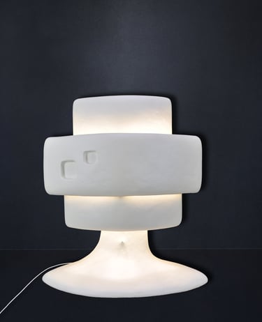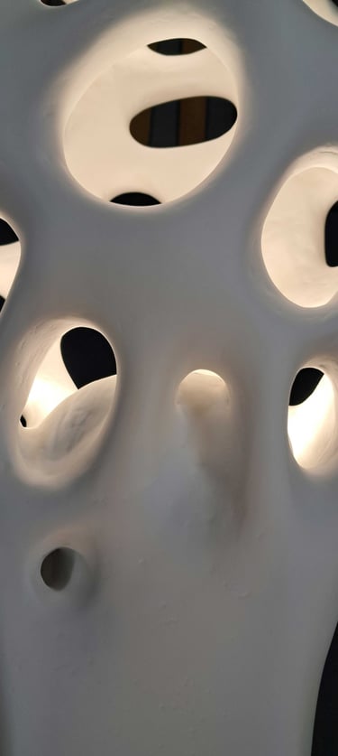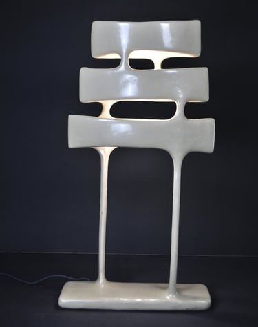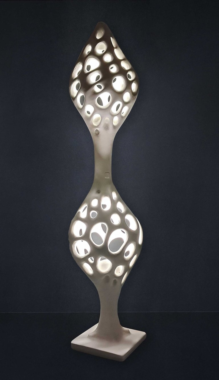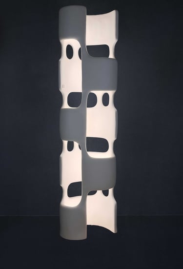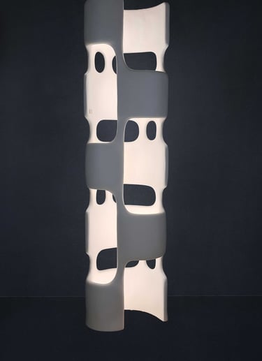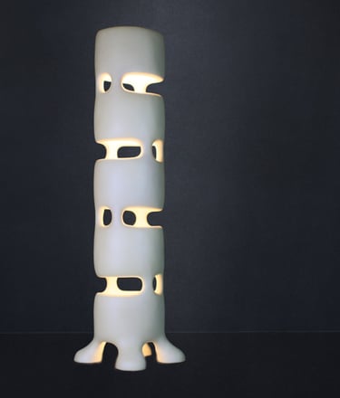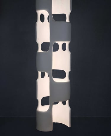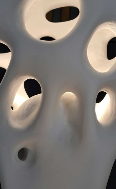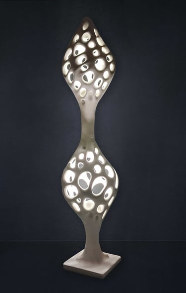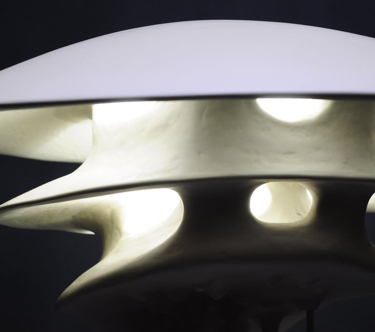 /DES SCULPTURES BLANCHES AUX REFLETS NACRÉS TRÈS LÉGÈREMENT COLORÉS, DES LAMPES QUI SAURONT RÉVÉLER VOS ESPACES INTÉRIEURS EN DIFFUSANT UNE AGRÉABLE SÉRÉNITÉ ET UNE DOUCE ORIGINALITÉ./