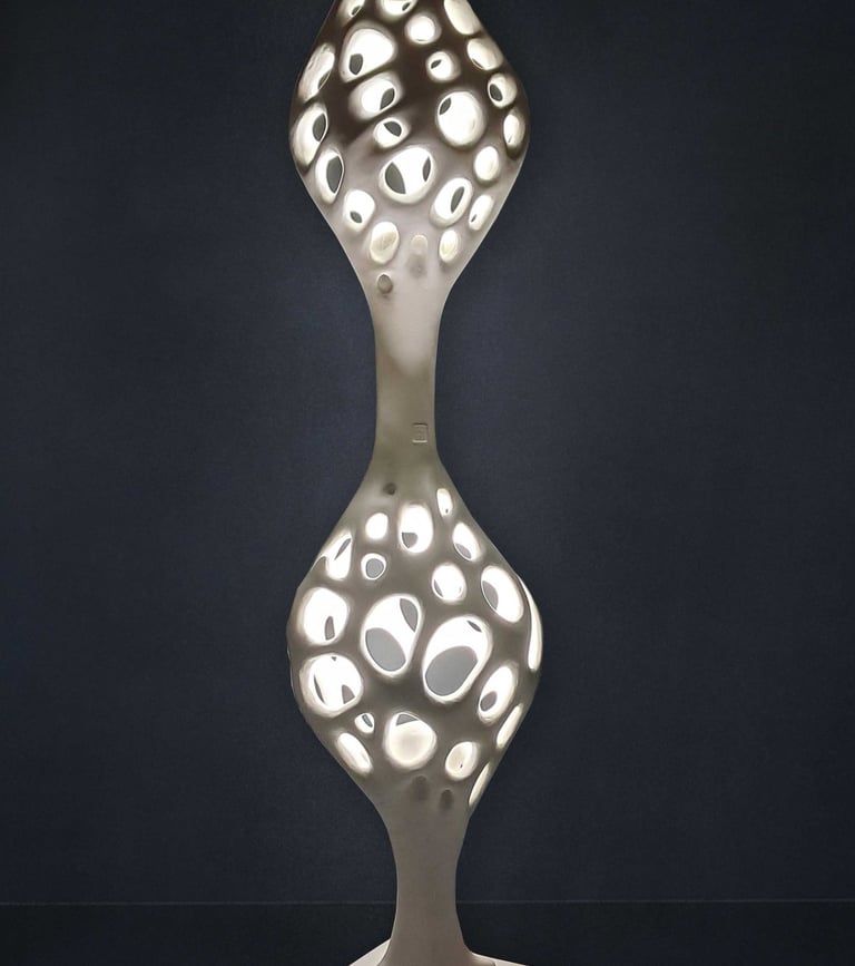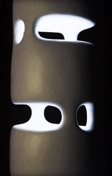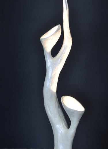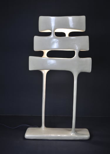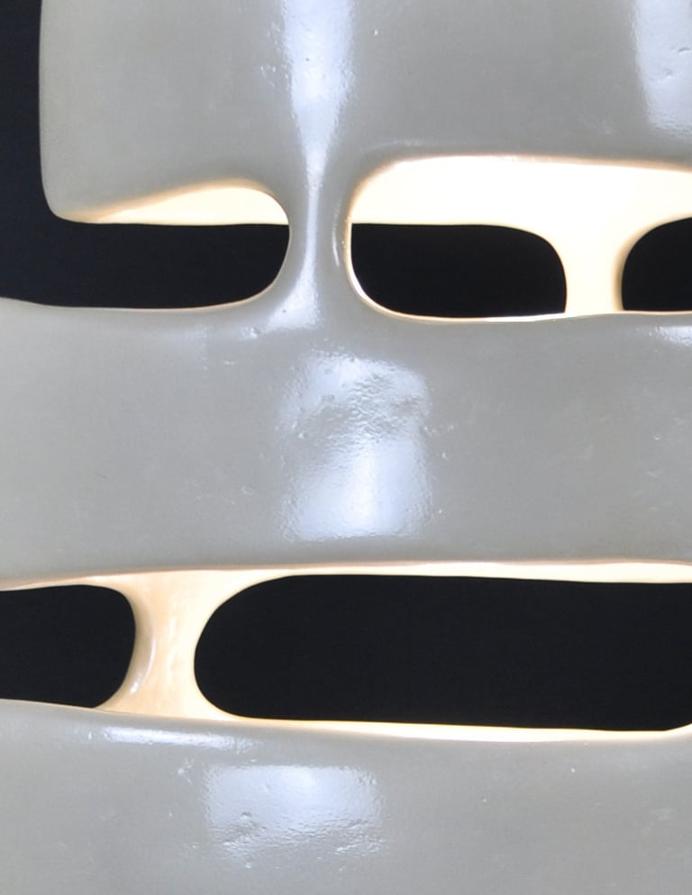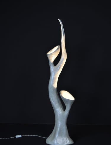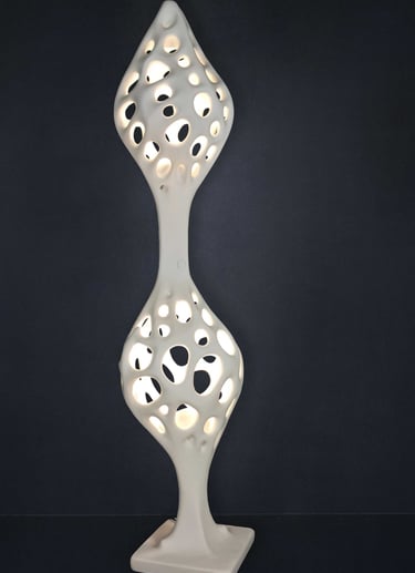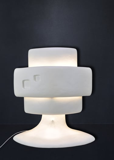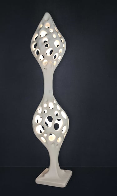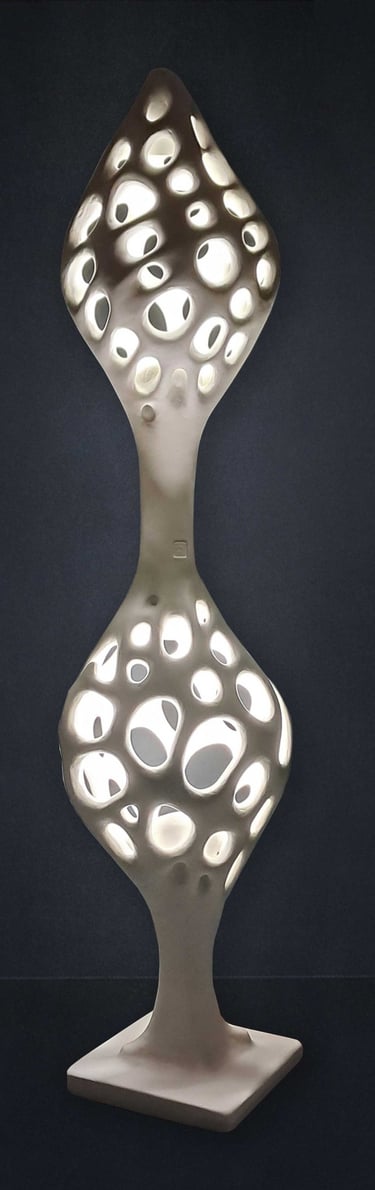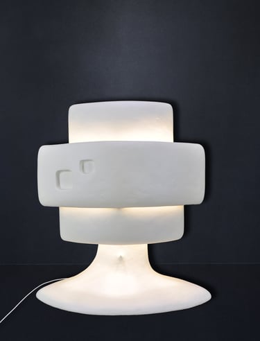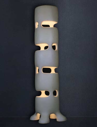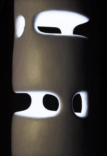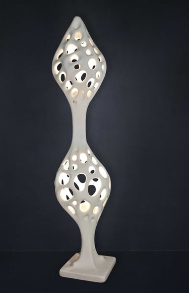 /DES SCULPTURES BLANCHES AUX REFLETS NACRÉS TRÈS LÉGÈREMENT COLORÉS, DES LAMPES QUI SAURONT RÉVÉLER VOS ESPACES INTÉRIEURS EN DIFFUSANT UNE AGRÉABLE SÉRÉNITÉ ET UNE DOUCE ORIGINALITÉ./